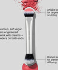 An innovative, multi-use brush with ultra-soft, vegan bristles. Use either side with cream and powder formulas to sculpt, define and seamlessly blend.