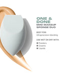 • The One & Done Mini Makeup Sponge Duo takes our One & Done Multifunctional Makeup Sponge and downsizes it for ultraprecision complexion blending. The multifaceted shape of each sponge features rounded edges for quick coverage, a flat surface for building coverage, a fine point for microtargeting undereyes, and a chiseled edge for exacting eye, contour, or lip application cleanup.