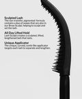 تستهدف أداة التطبيق الفريدة والمنحنية والمشطية كل رمش لفصلها وإطالتها، مما يخلق لمسة نهائية عالية التأثير دون تكتلات أو تلطخ أو نقل.