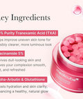 استخدمي كبسولة TXA الحمراء لتحسين لون بشرتك وملمسها. عند ذوبانها في الجل الأحمر، تُعزز إشراقتها وتساعد على الحصول على بشرة ناعمة كالزجاج.