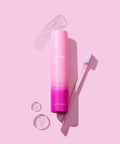 Apply a small amount 2 pumps to the brush included and style or slick back the flyaways and baby hairs