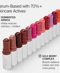 A serum-based, high-pigment blush with 70%+ skincare and proprietary complexes that hydrate and make skin look more plump in a longwear, glassy balm.