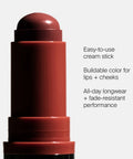 Glide onto skin. Diffuse any harsh lines using your fingers, the HAUS LABS DUAL-ENDED MULTI-PURPOSE BRUSH or a makeup sponge. Layer to intensify color.