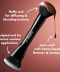 A dual-end makeup brush designed for bronzing and sculpting your complexion with Camo Liquid Bronzer & Contour.