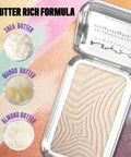 Nourishing Ingredients. Infused with mango butter, shea butter, and almond butter for a creamy, powder highlighter texture that spreads like butta. Cruelty-free & vegan formula.