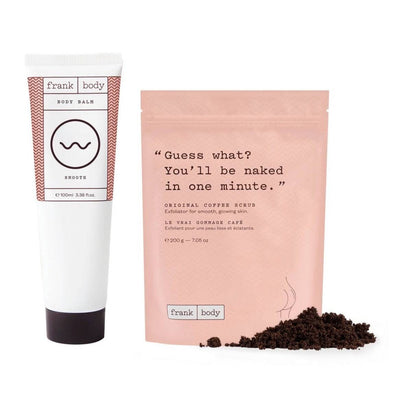 Get intimate with Frank, the coffee-based skin care that has taken Insta and babes all across the globe by storm. Give your bod the ultimate makeover with this duo of original skin saviours. Features the bestselling Original Coffee Scrub to smooth and slough away flakiness and the Body Balm to soften and replenish moisture. Trust us, your skin will be thanking you.